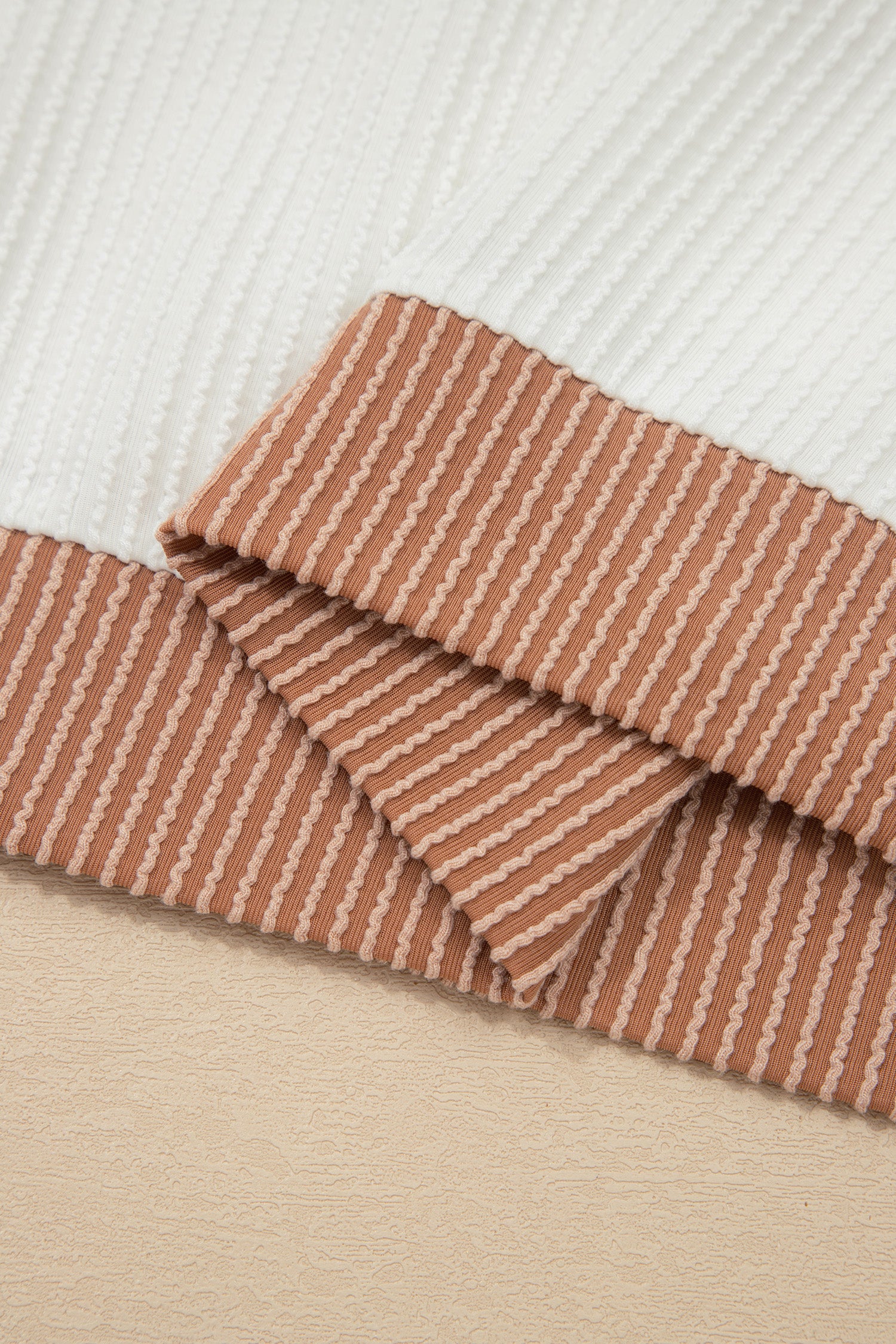 - The ribbed top is very fashionable for its textured fabric.