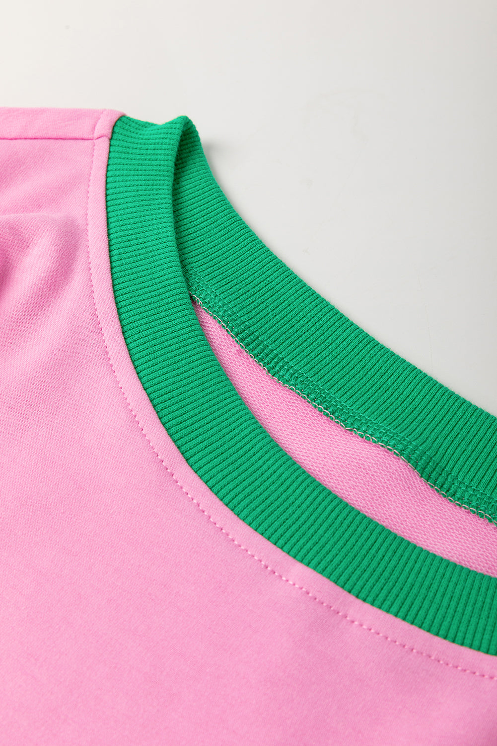 - This plus size two-piece set features a contrast trim T-shirt and a mini skirt.