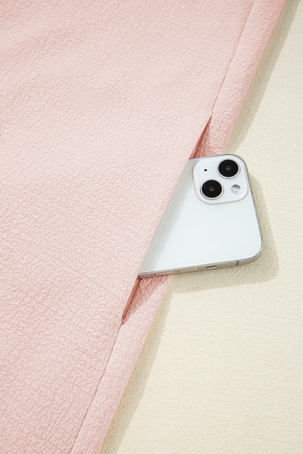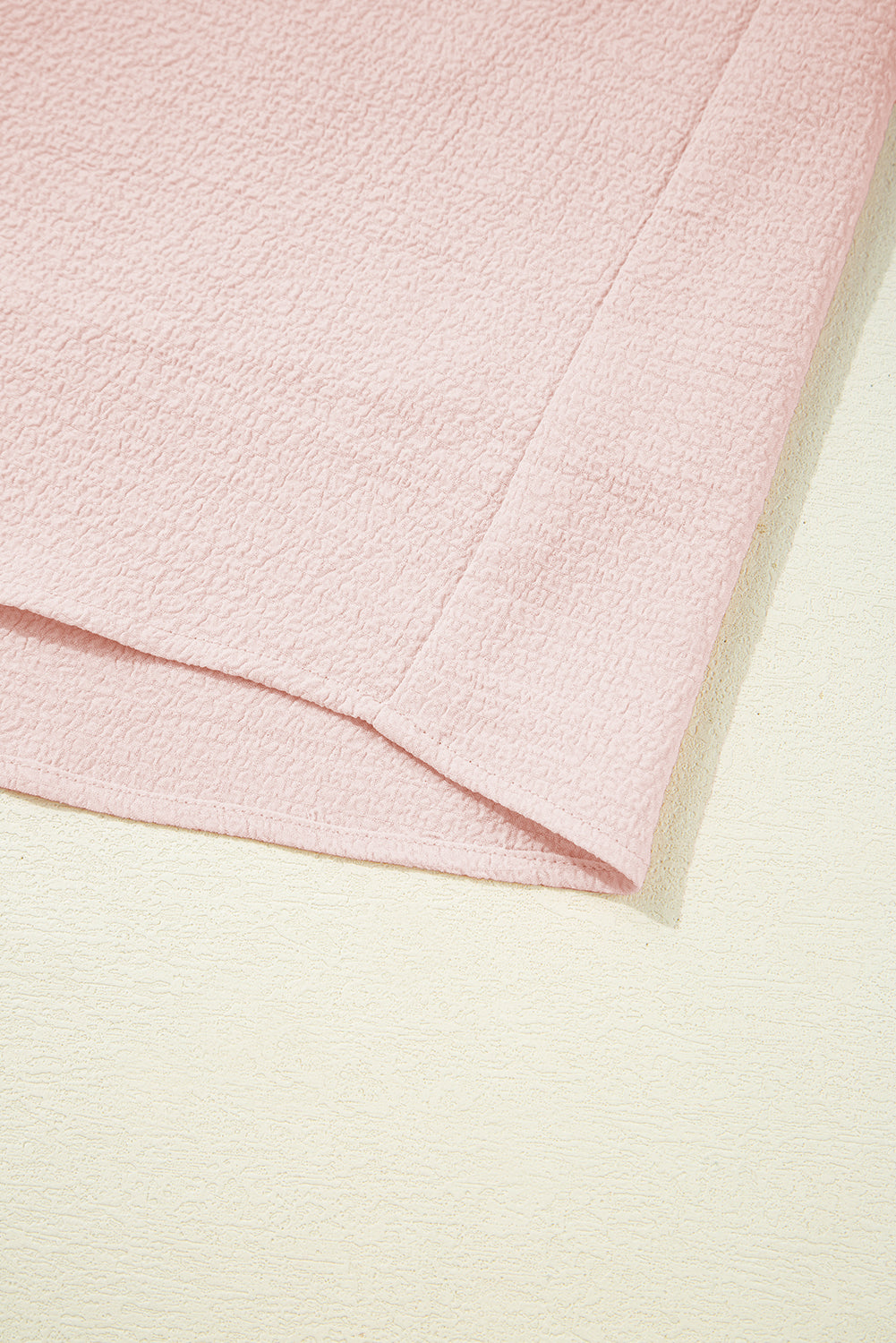Light Pink Textured Flutter Sleeve Square Neck Bow Back Mini Dress