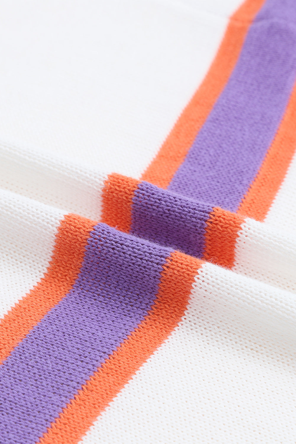 Multicolor Striped Long Sleeve Ribbed Trim Button Cardigan