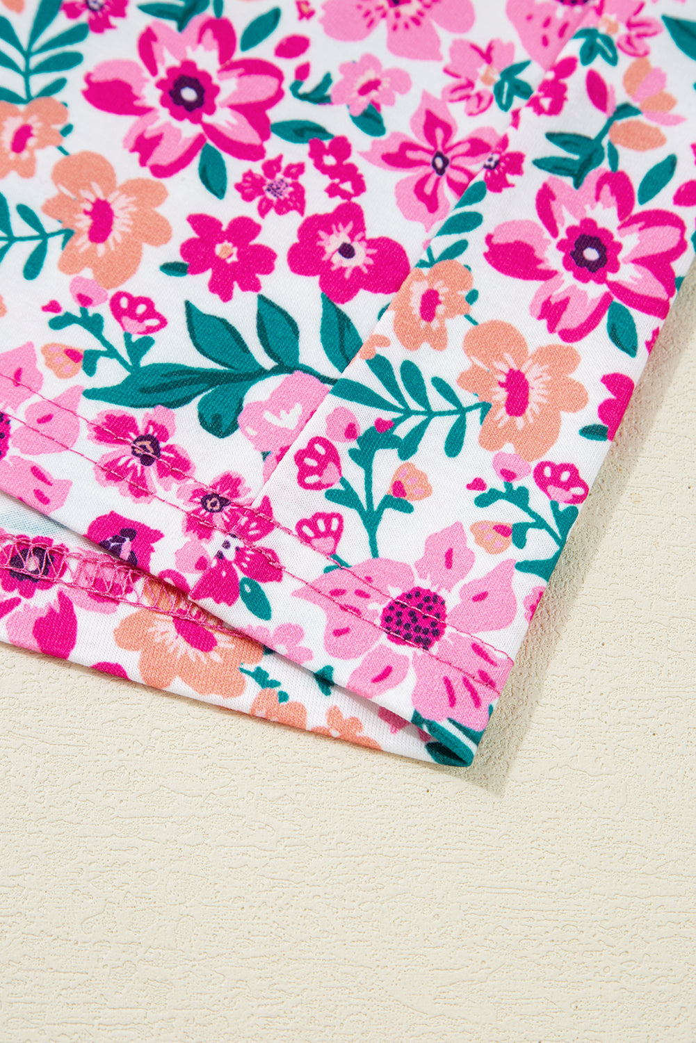 Pink Plus Size Floral Print Corded Patchwork Loose Top