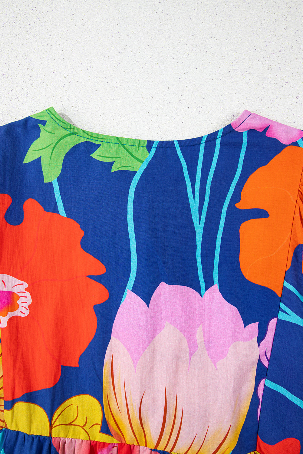 Rose Floral Print Split Neck Babydoll Dress