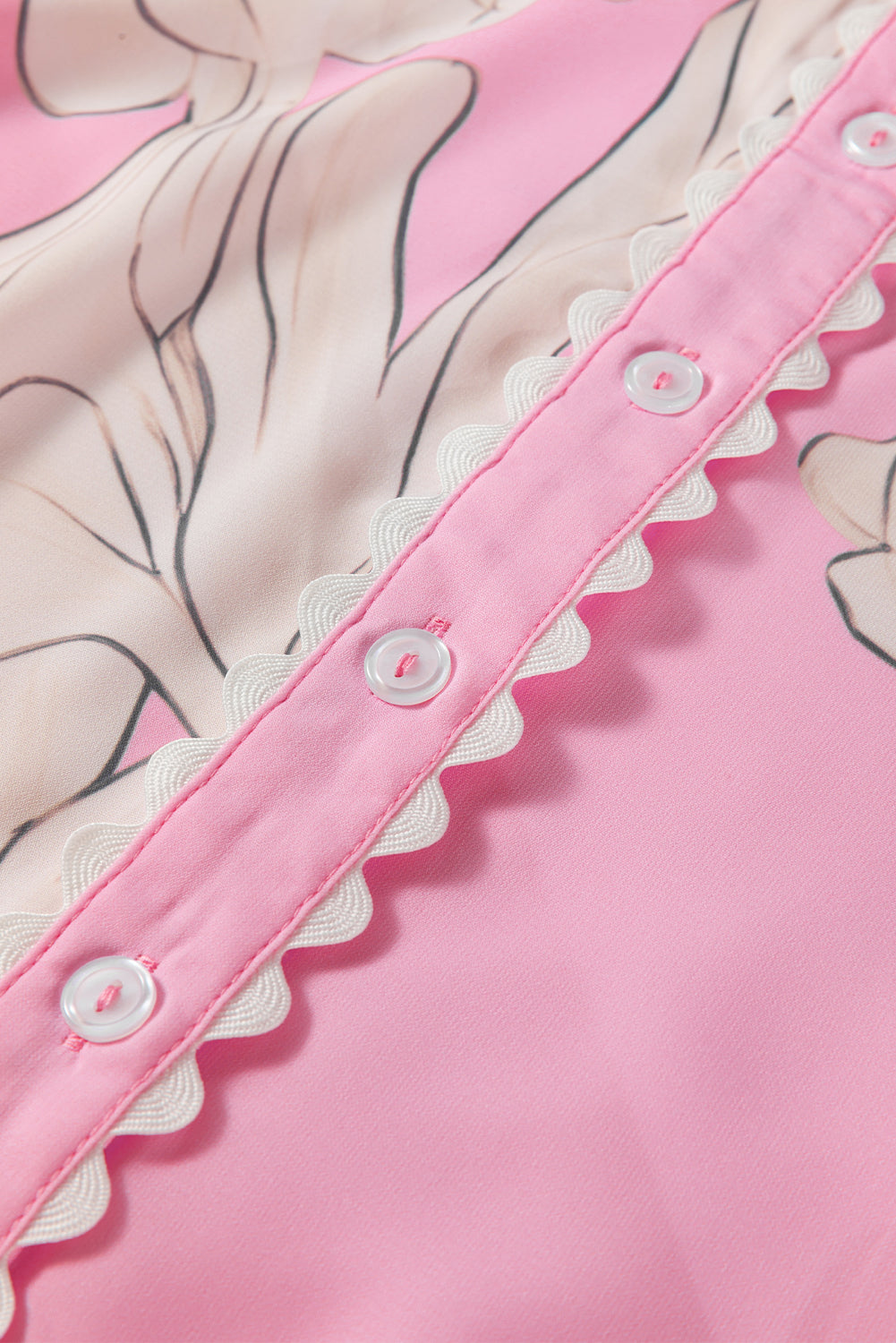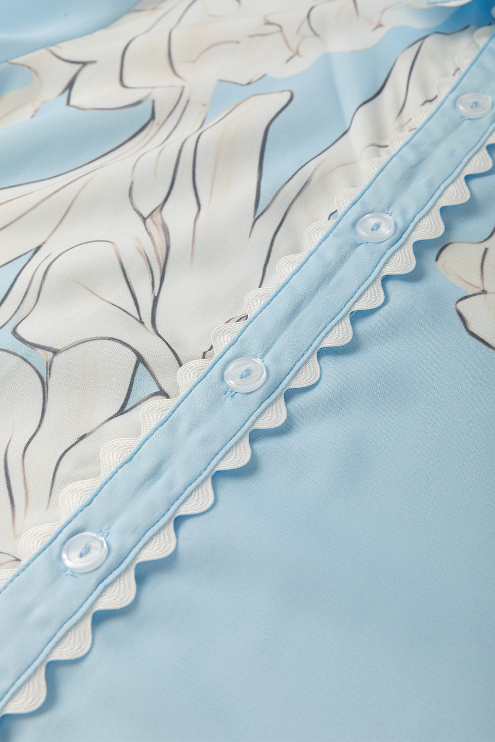 Sky Blue Floral Ric Rac Edge Puff Sleeve Button Up Summer Shirt